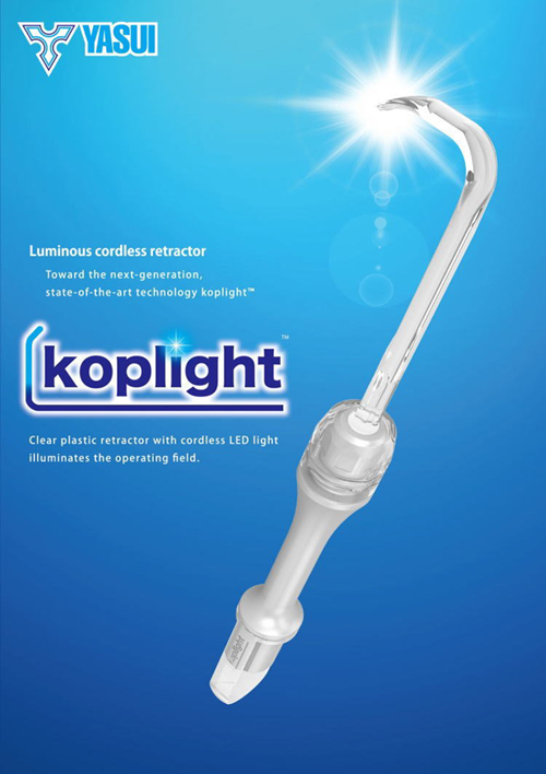 KOPLIGHT is a cordless, lightweight retractor with built-in LED light source. This innovative retractor KOPLIGHT is manufactured by Japanese manufacture “YASUI” located in Miyazaki Japan. KOPLIGHT has obtained CE mark and local approvals in Japan, China, Korea and Taiwan. CHIUYU MEDICAL is an exclusive agent for YASUI in Taiwan and SEA countries and should you have any questions on KOPLIGHT, please feel free to contact us. Our sales staff will contact you shortly.